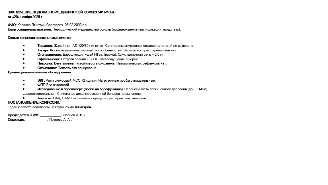 Стандартный состав специалистов для прохождения водолазной медкомиссии включает: