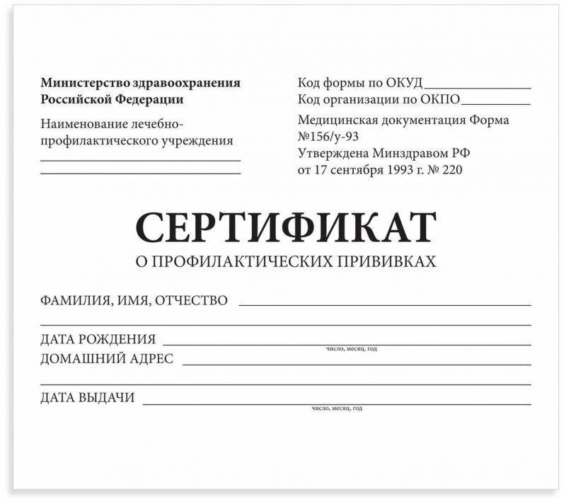 Купить прививочный сертификат 156/у-93